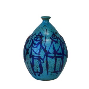 Vintage Hand Thrown Blue Studio Pottery Vase Signed GB