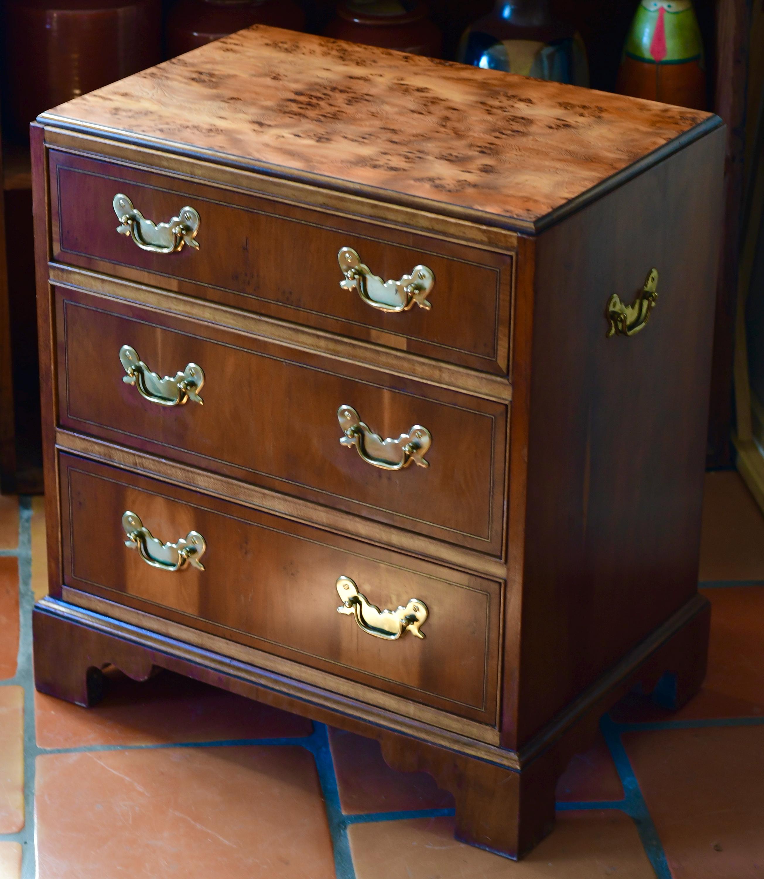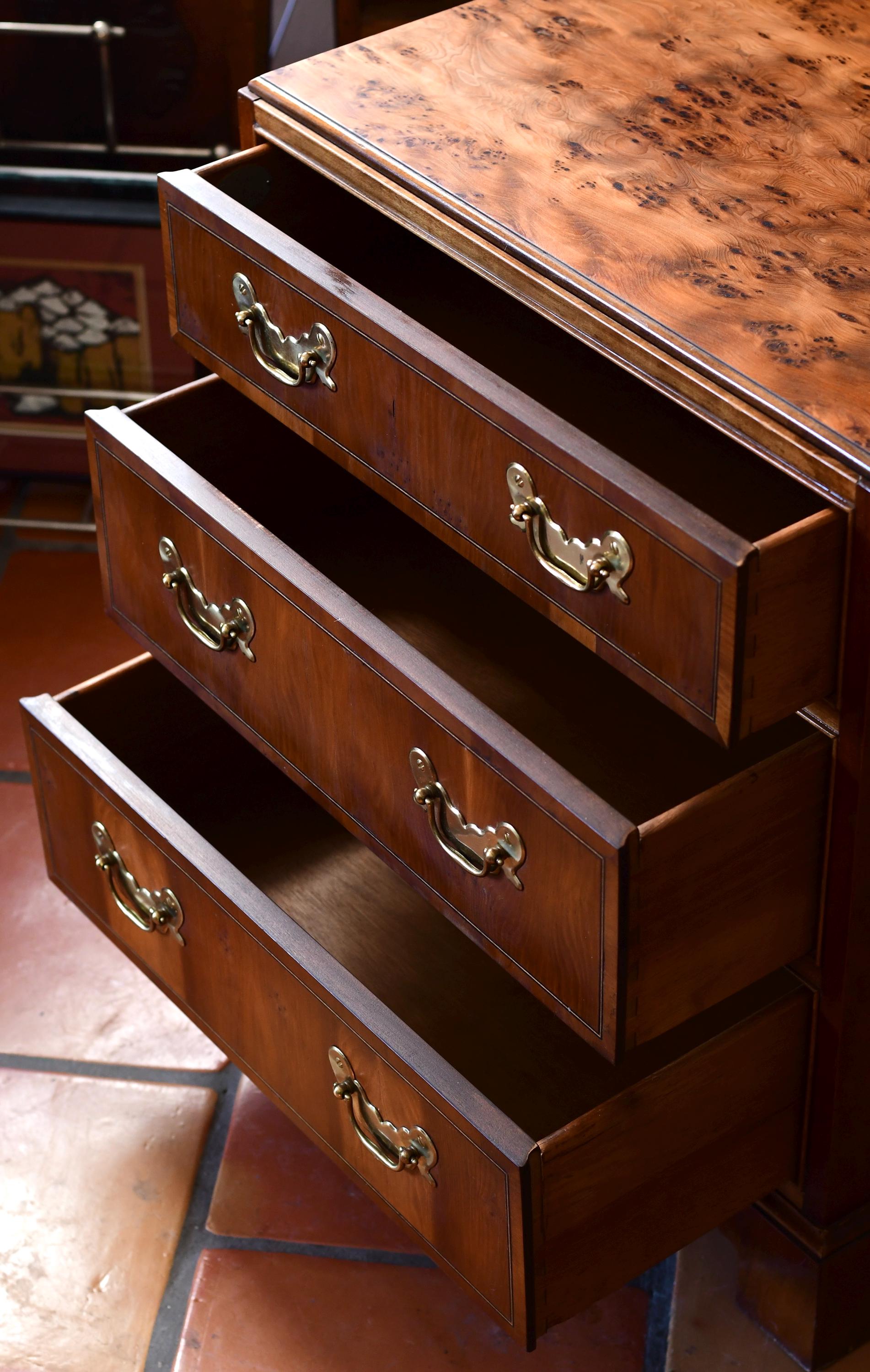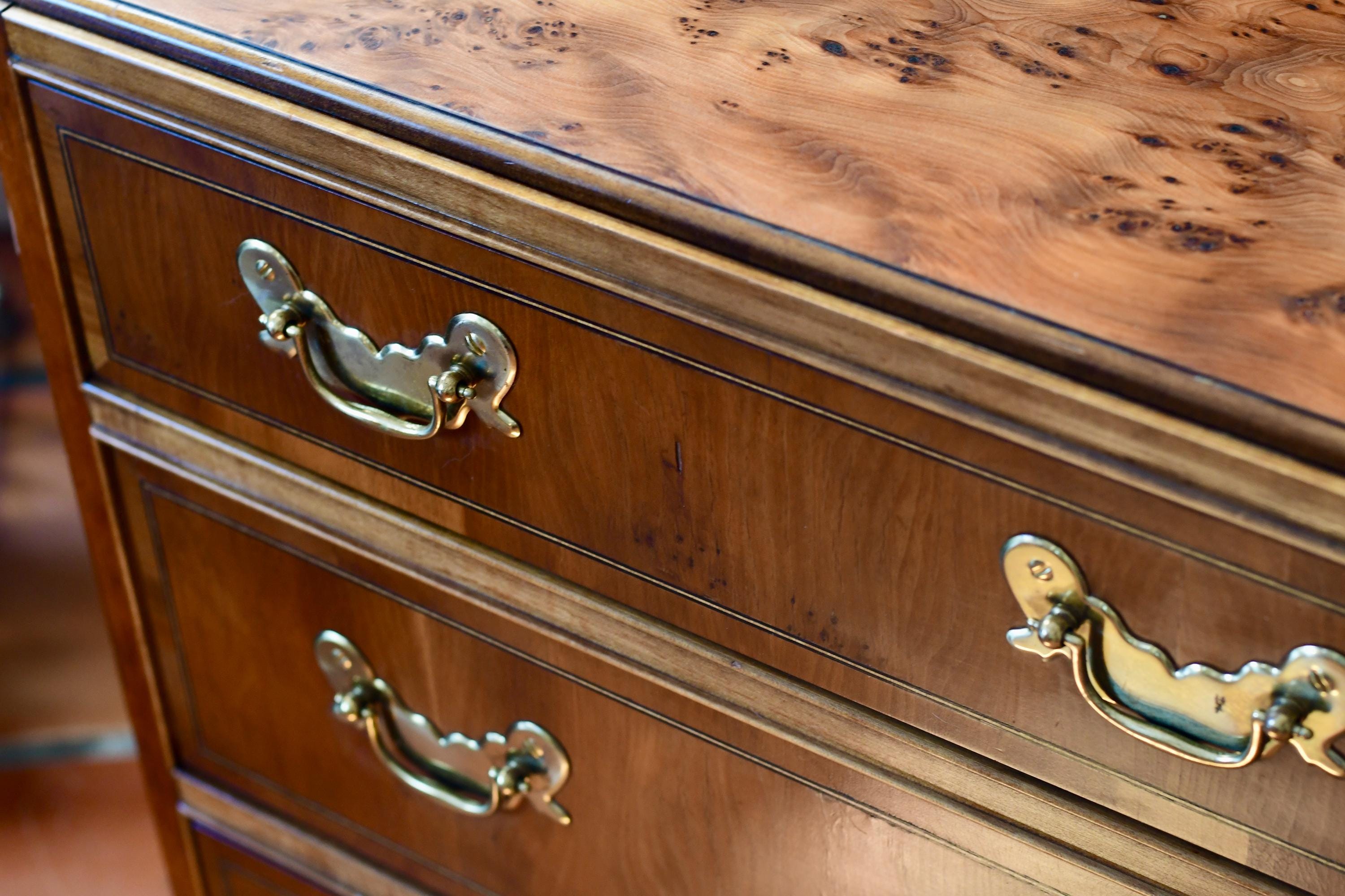 Vintage Baker Furniture Georgian Burled Wood & Mahogany Chest Of Drawers