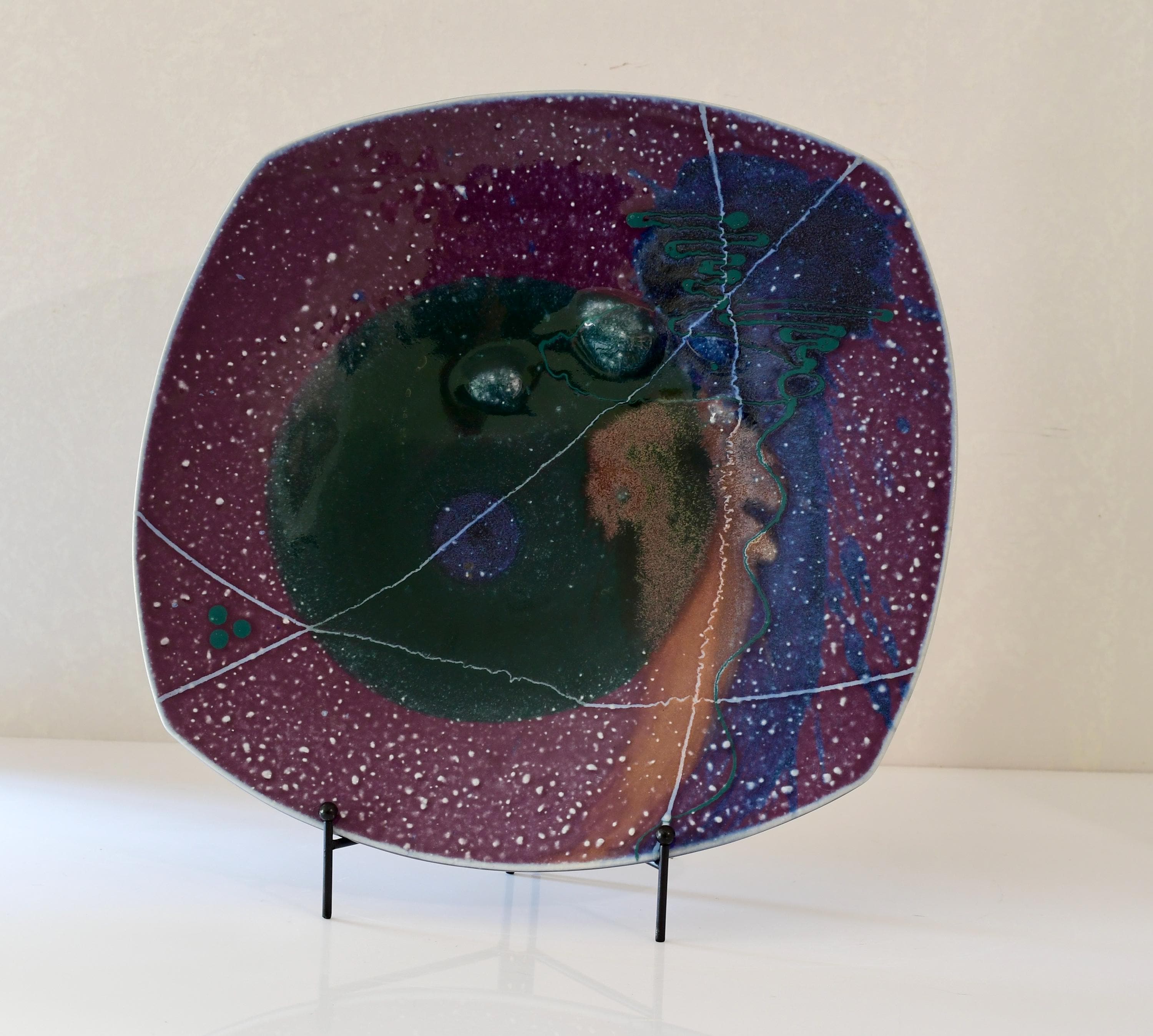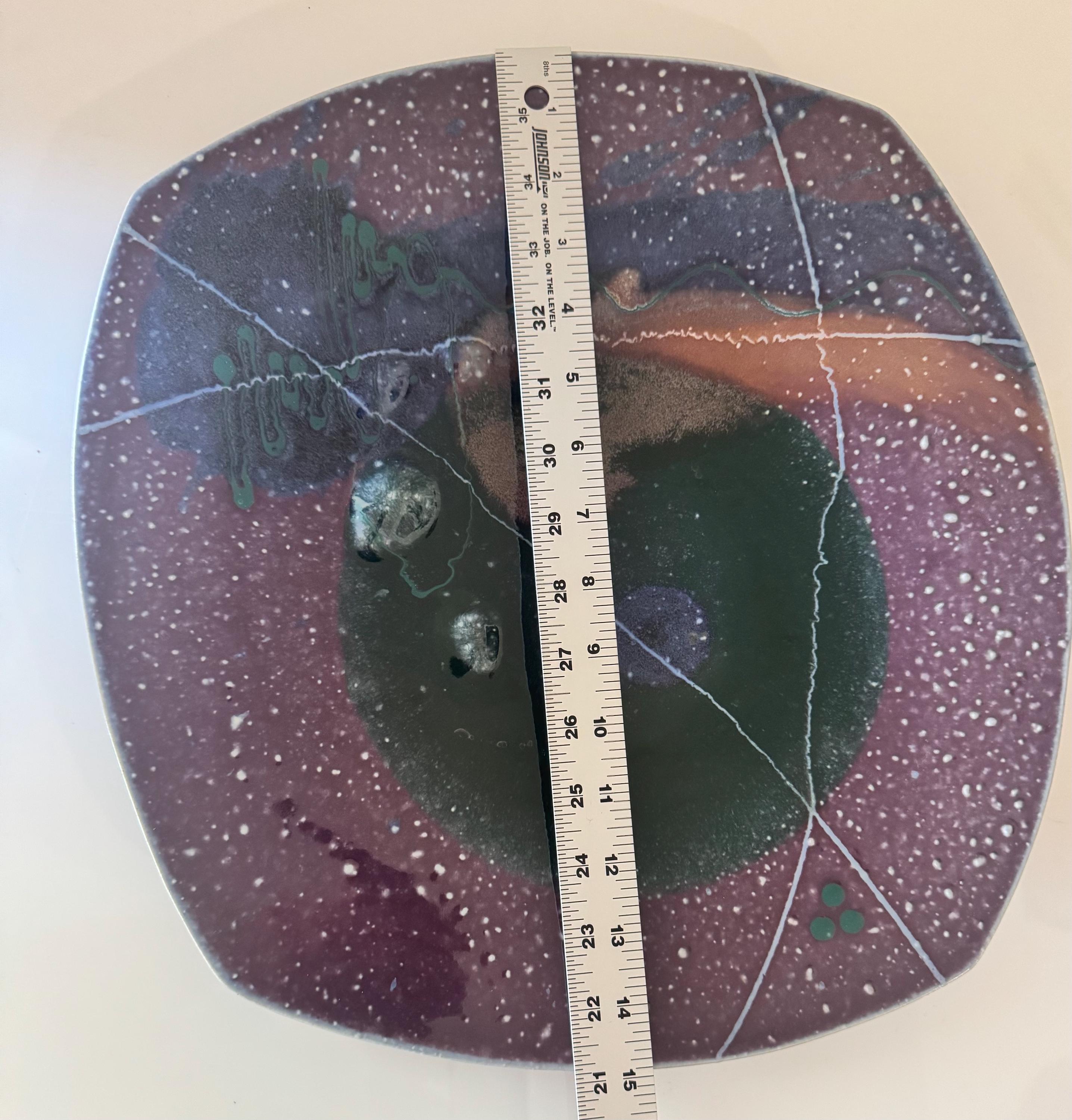 Vintage Handmade Studio Pottery Art Platter Plate Signed 15” Square