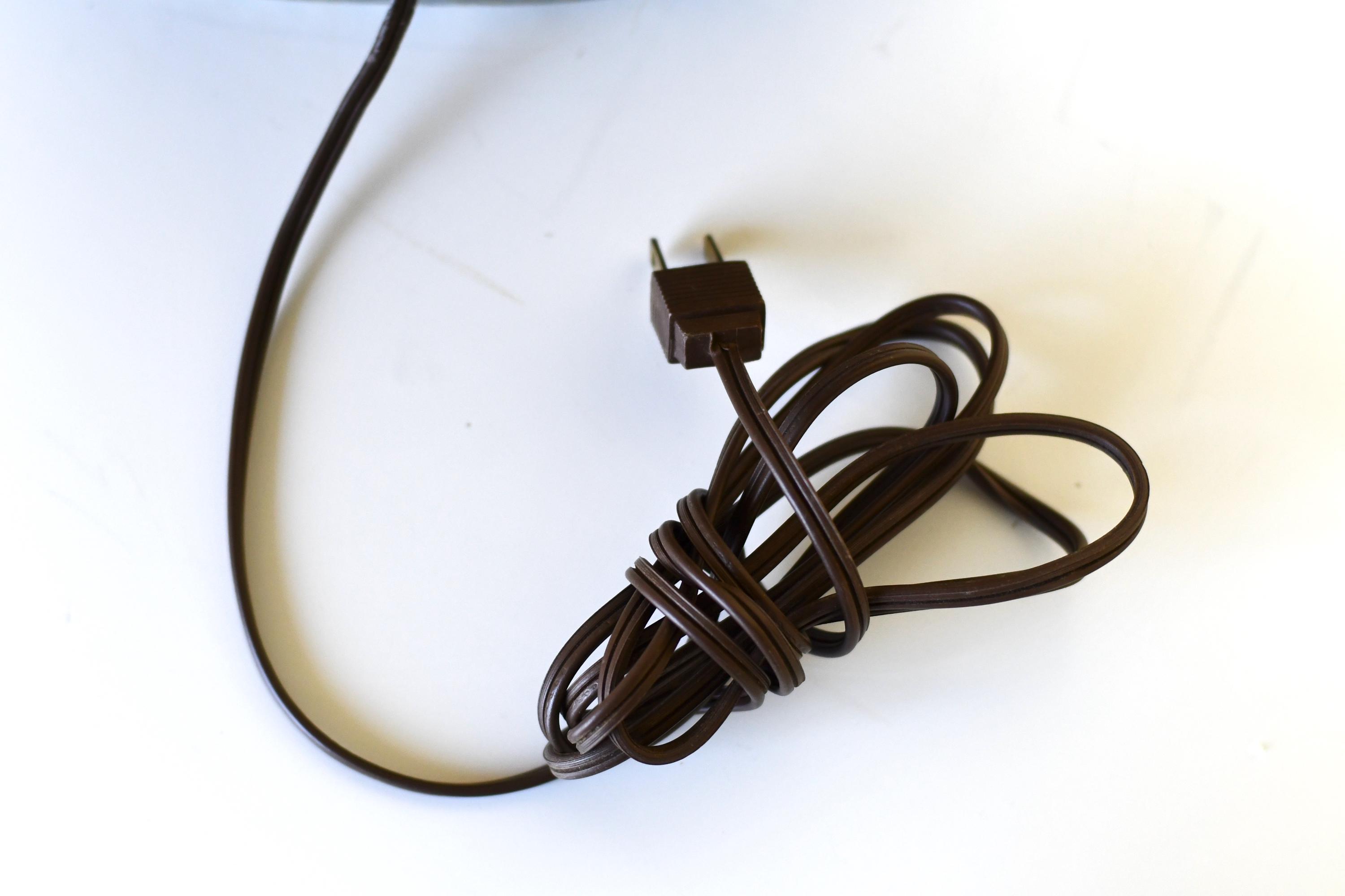 The lamp is in great condition with damage and works perfectly. It uses a standard size light bulb.