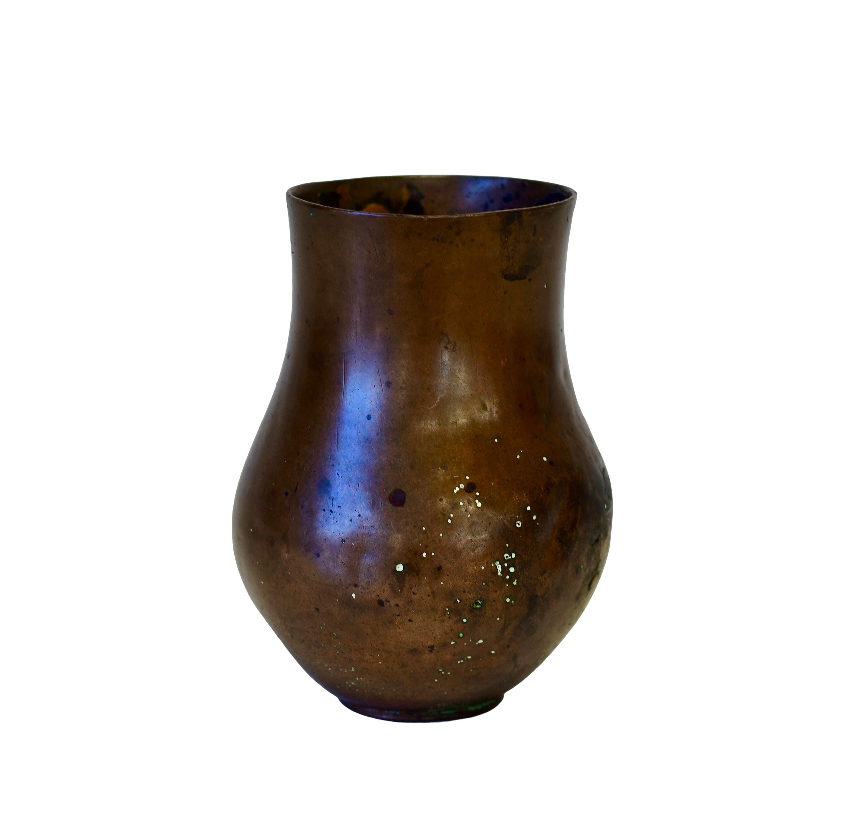 Antique Hand Hammered Copper Vessel Vase