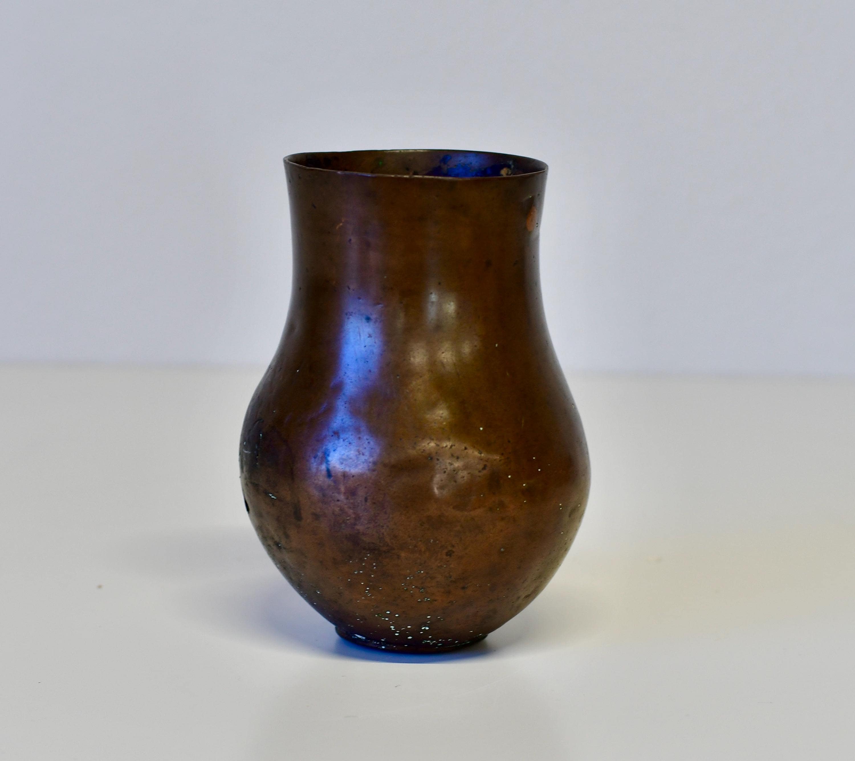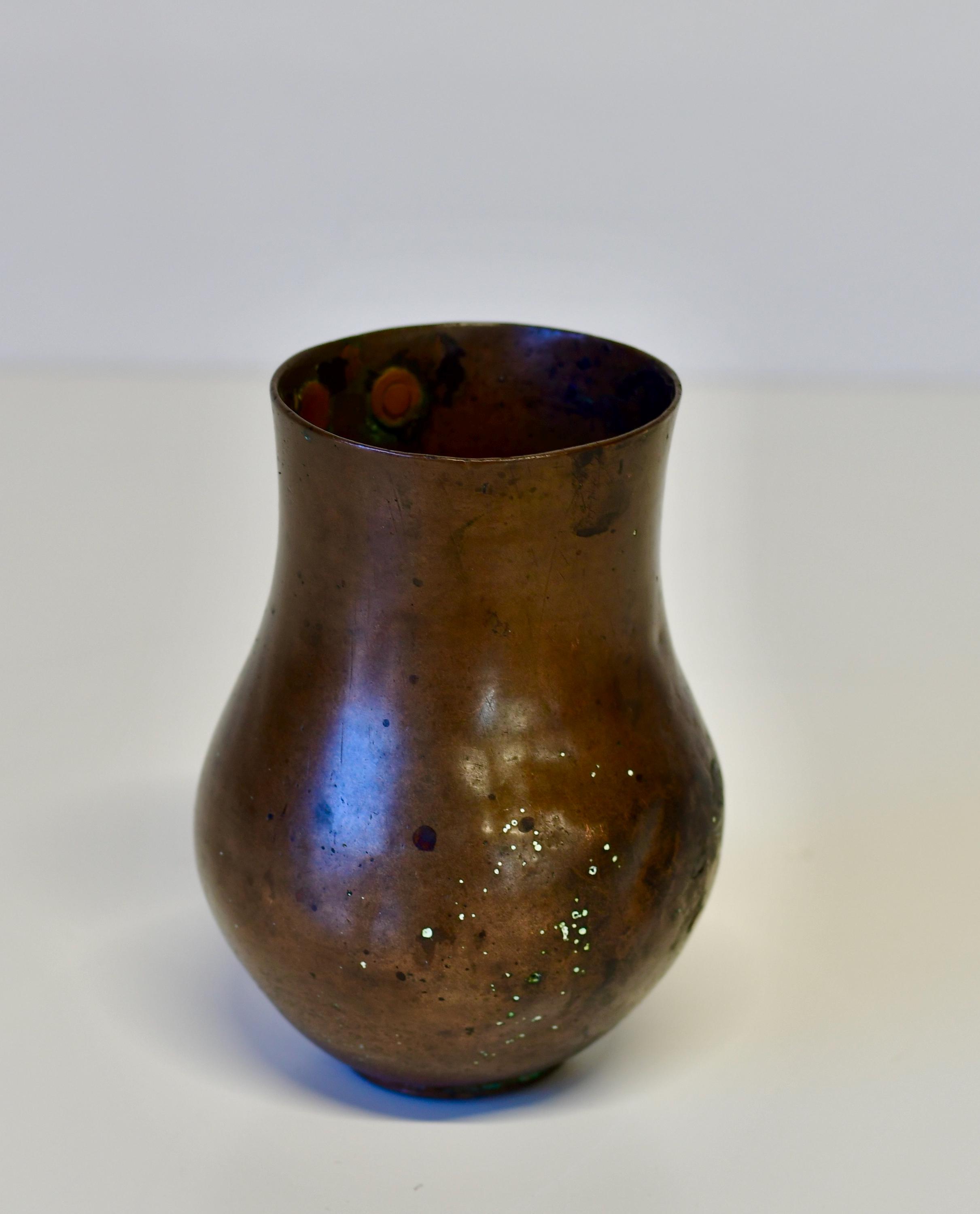Antique Hand Hammered Copper Vessel Vase 19th Century 6.5” Tall