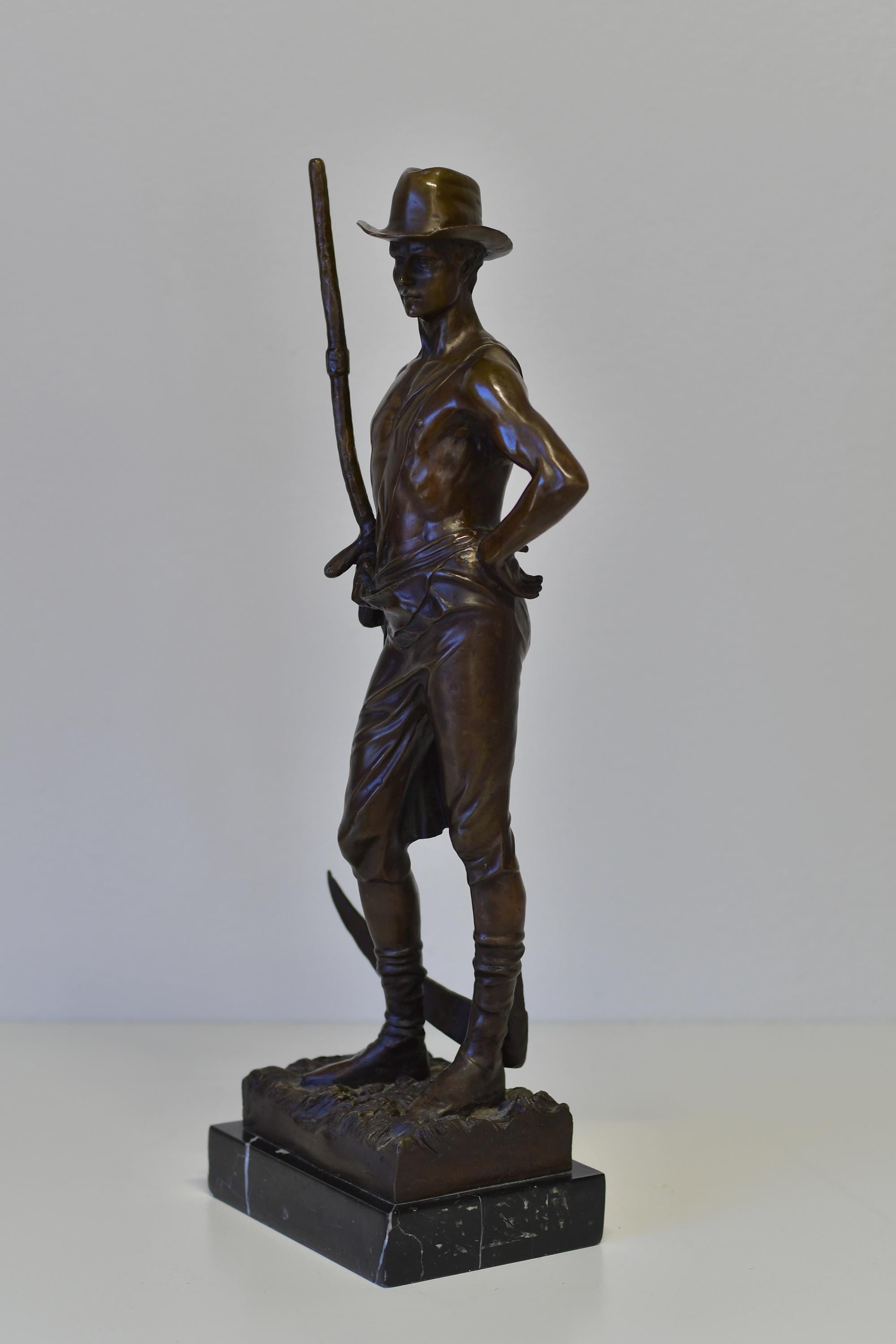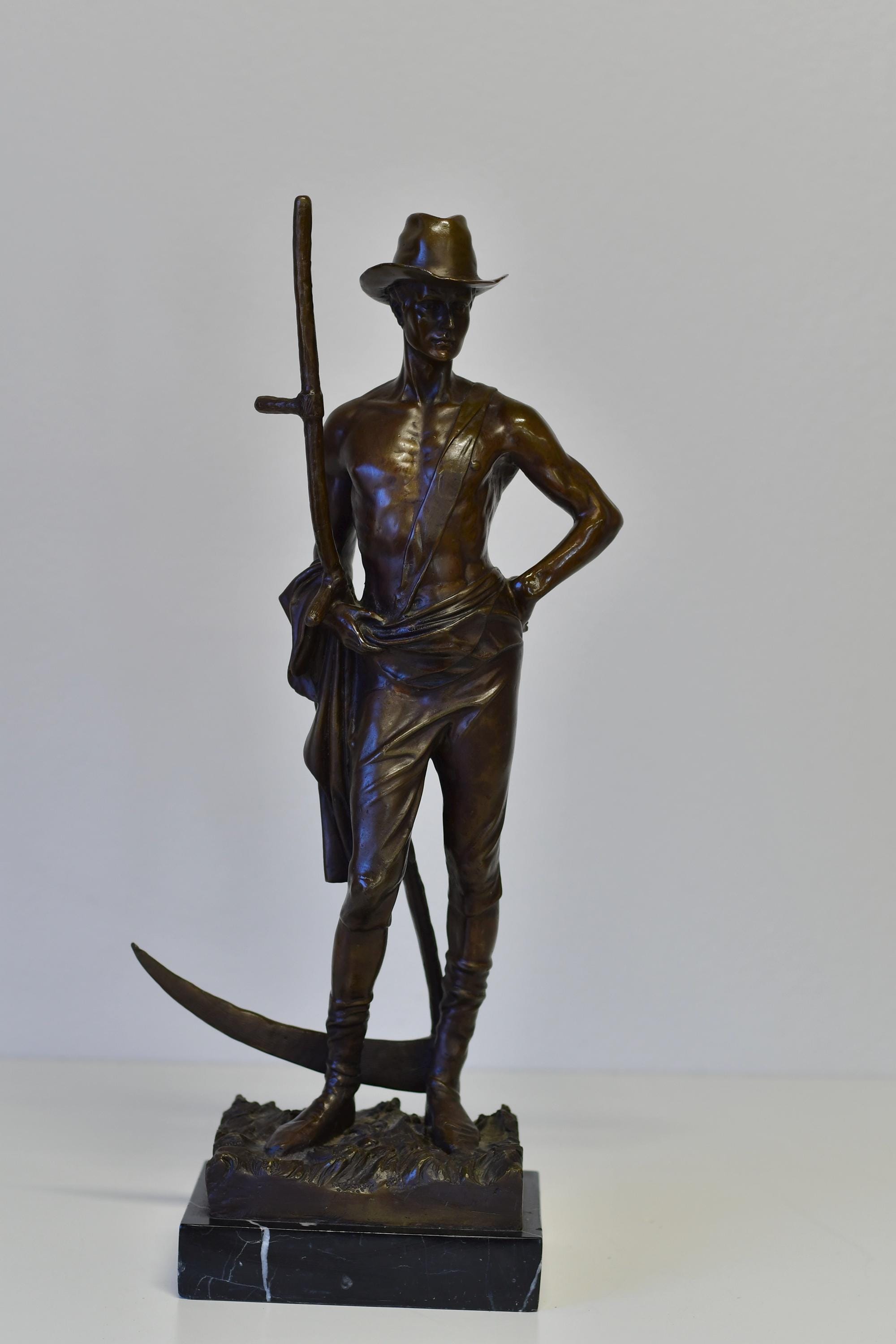 Vintage Mid Century Bronze Sculpture Inspired By Hamo Thornycorft Mower 21” Tall