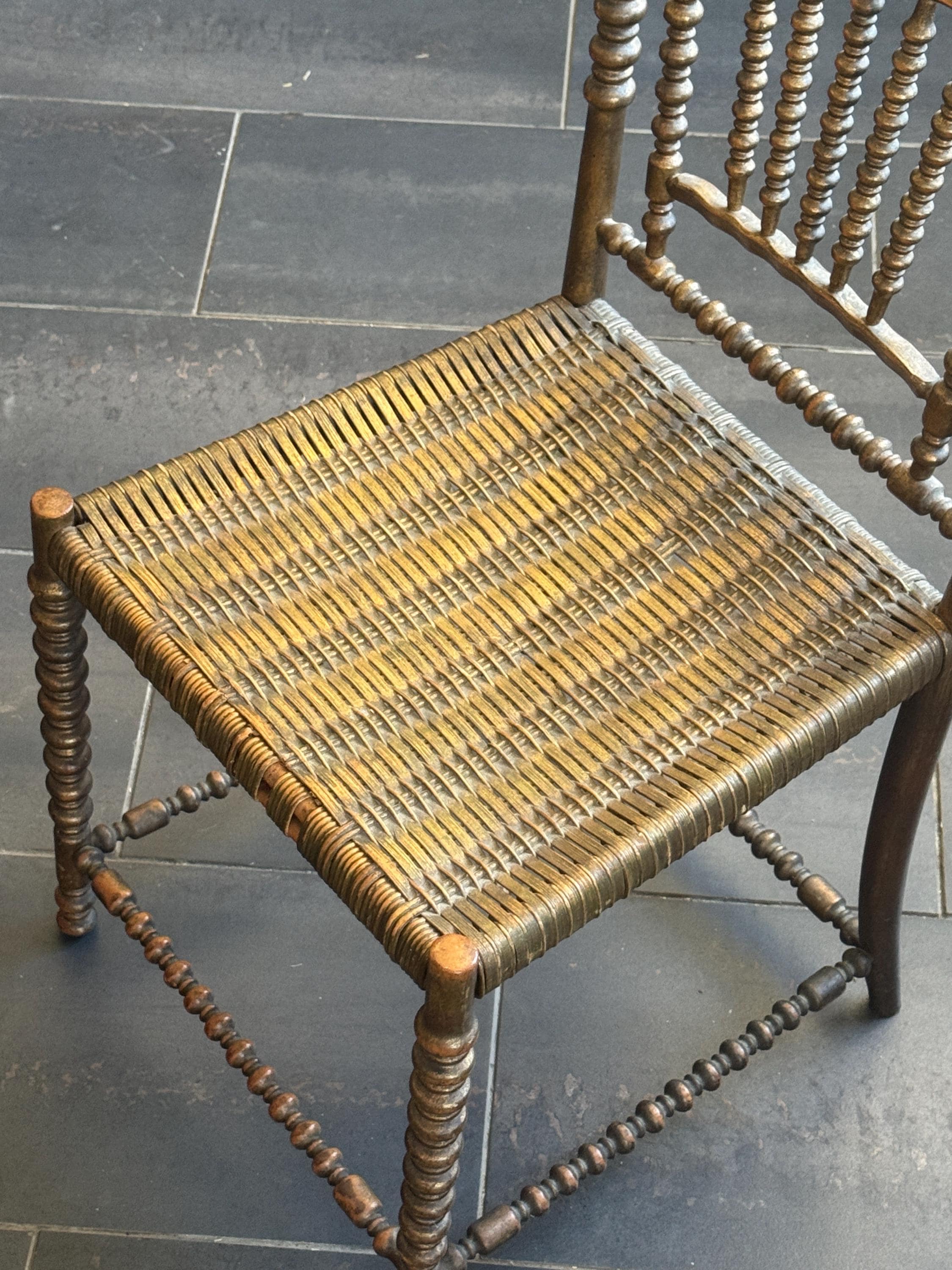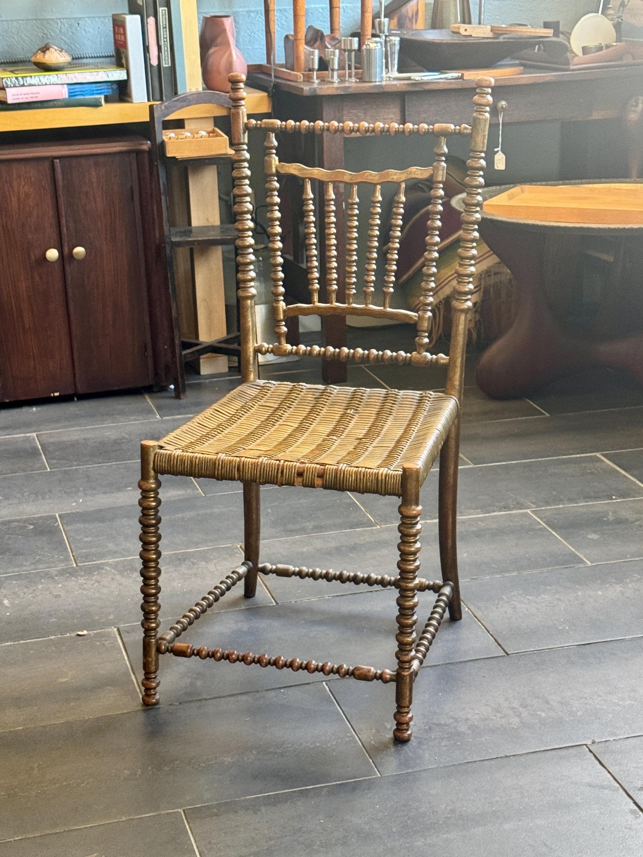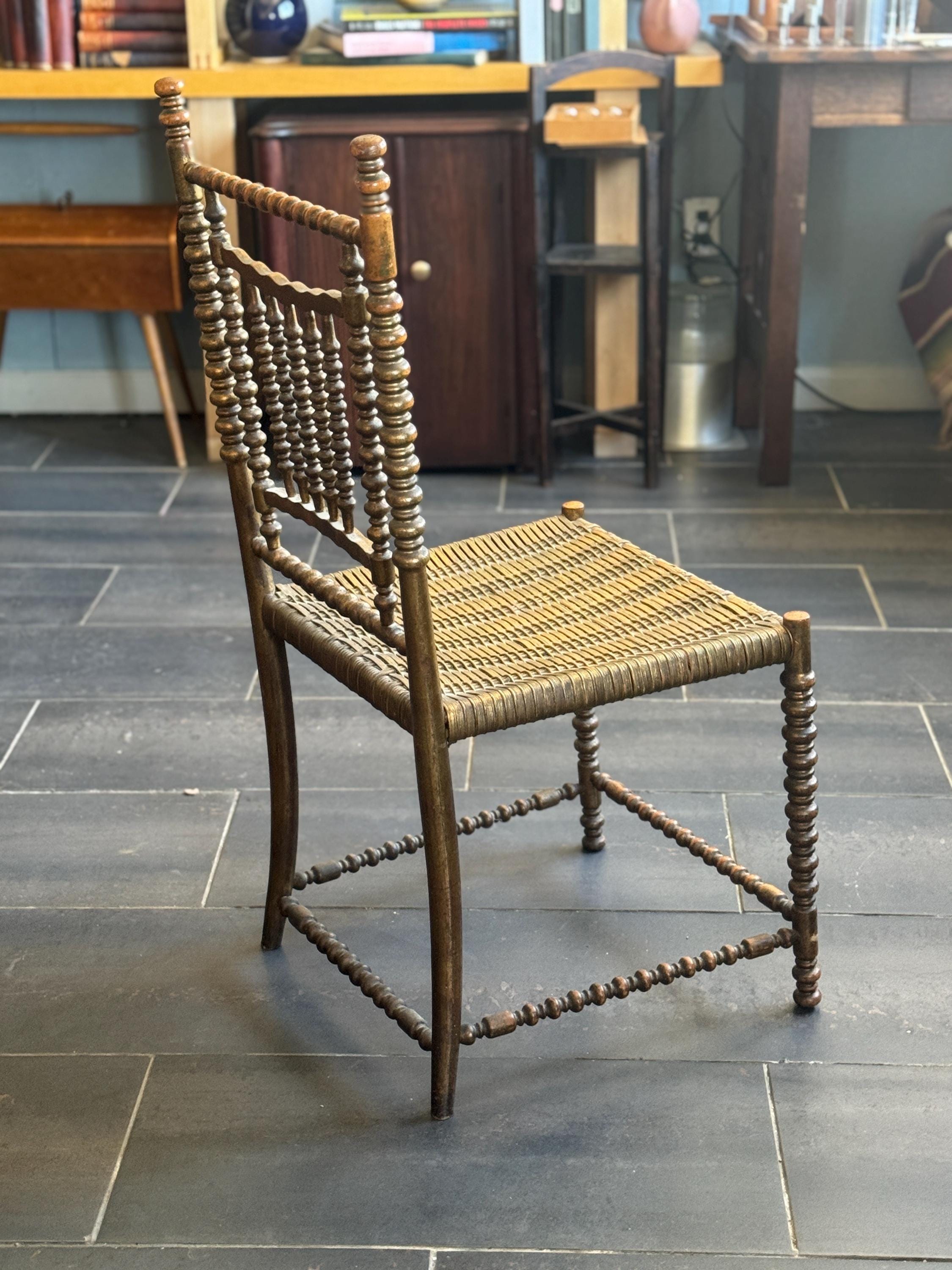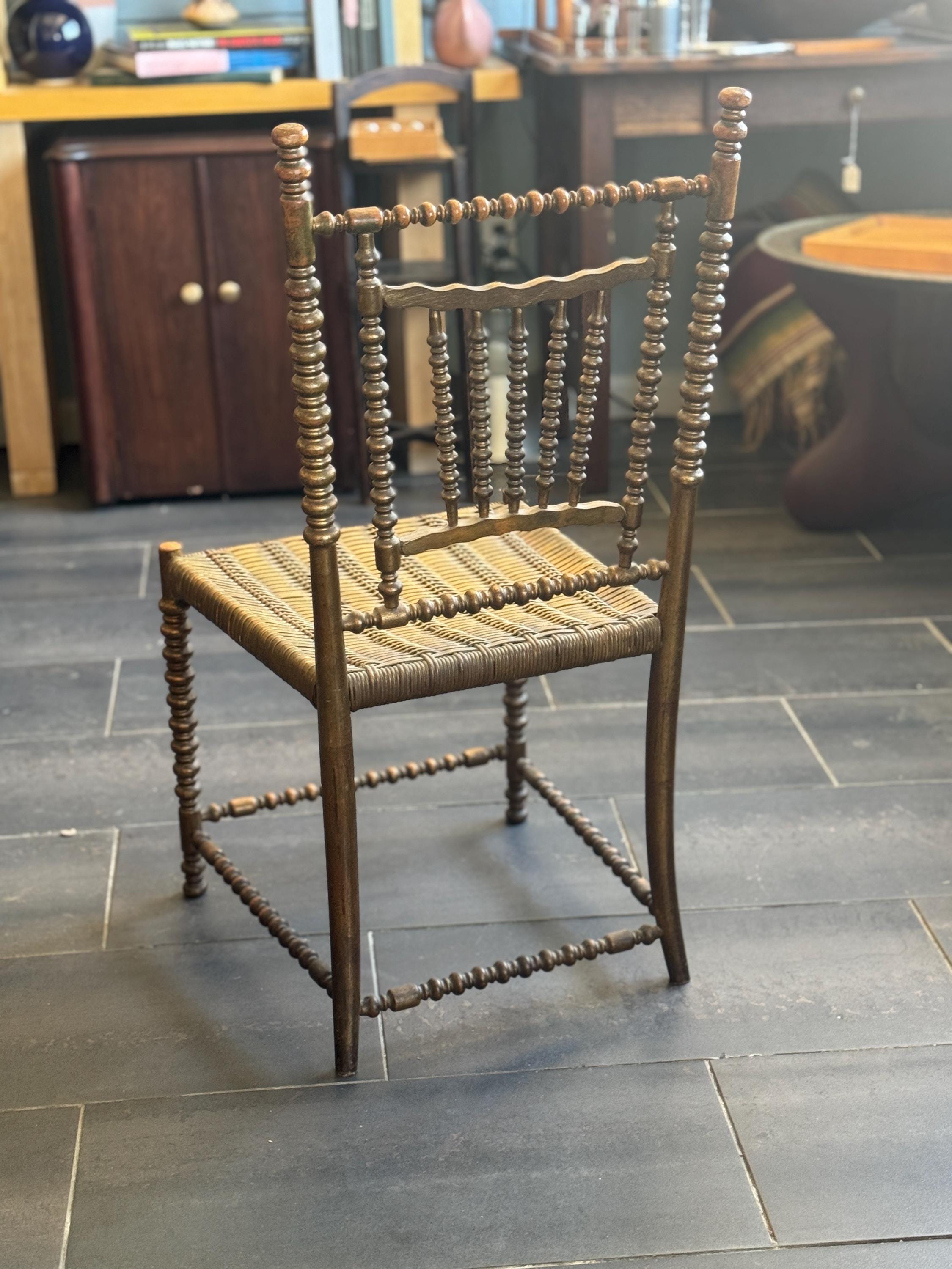 Antique French Bobbin Cane 19th Century Side Chair