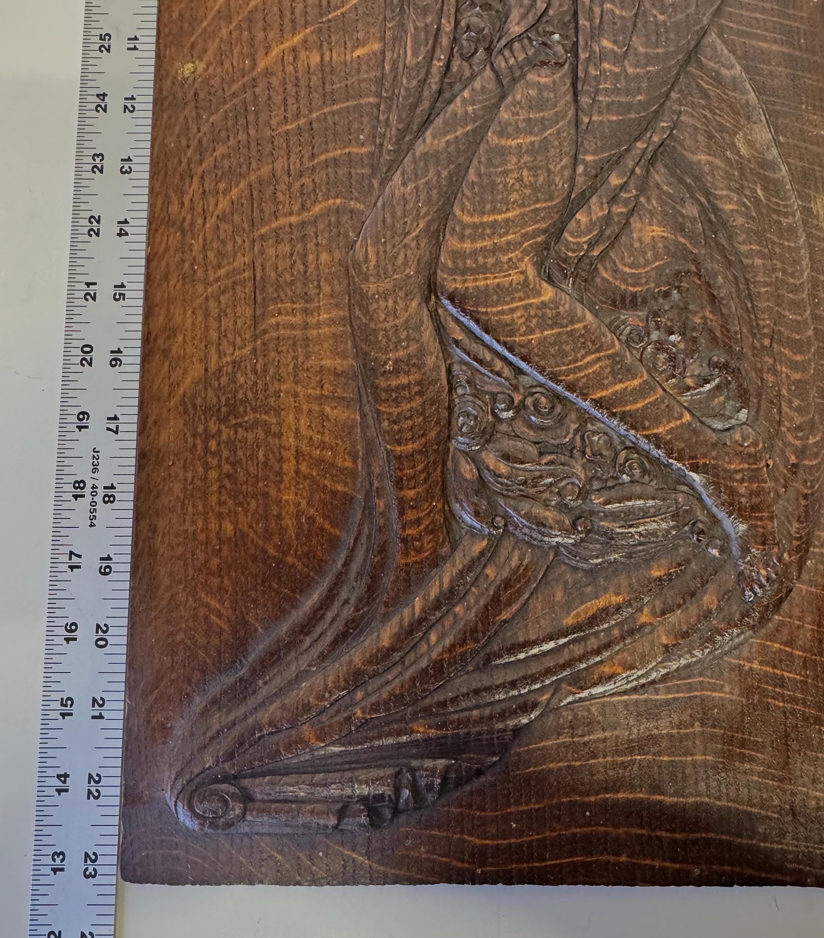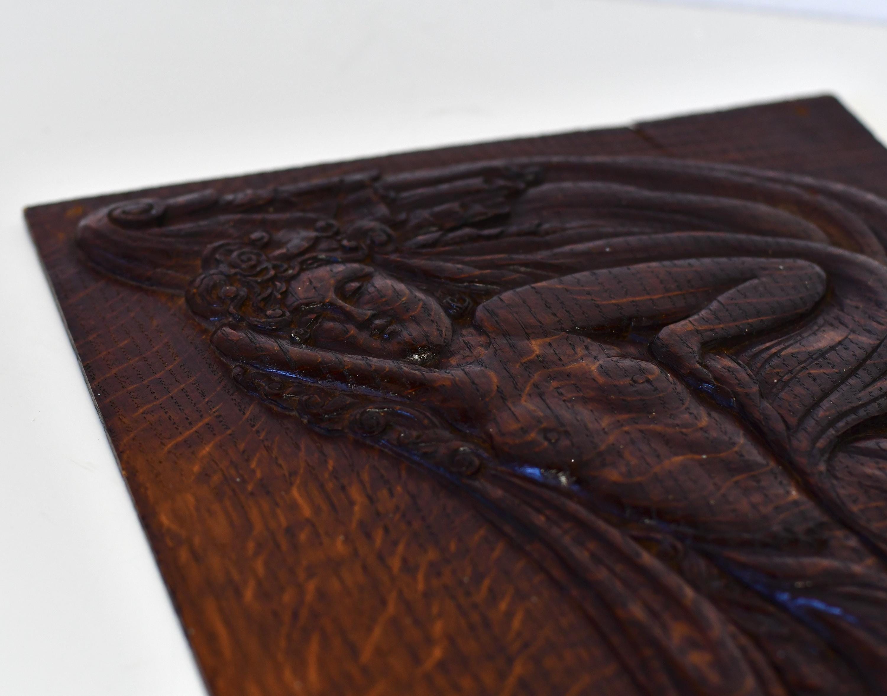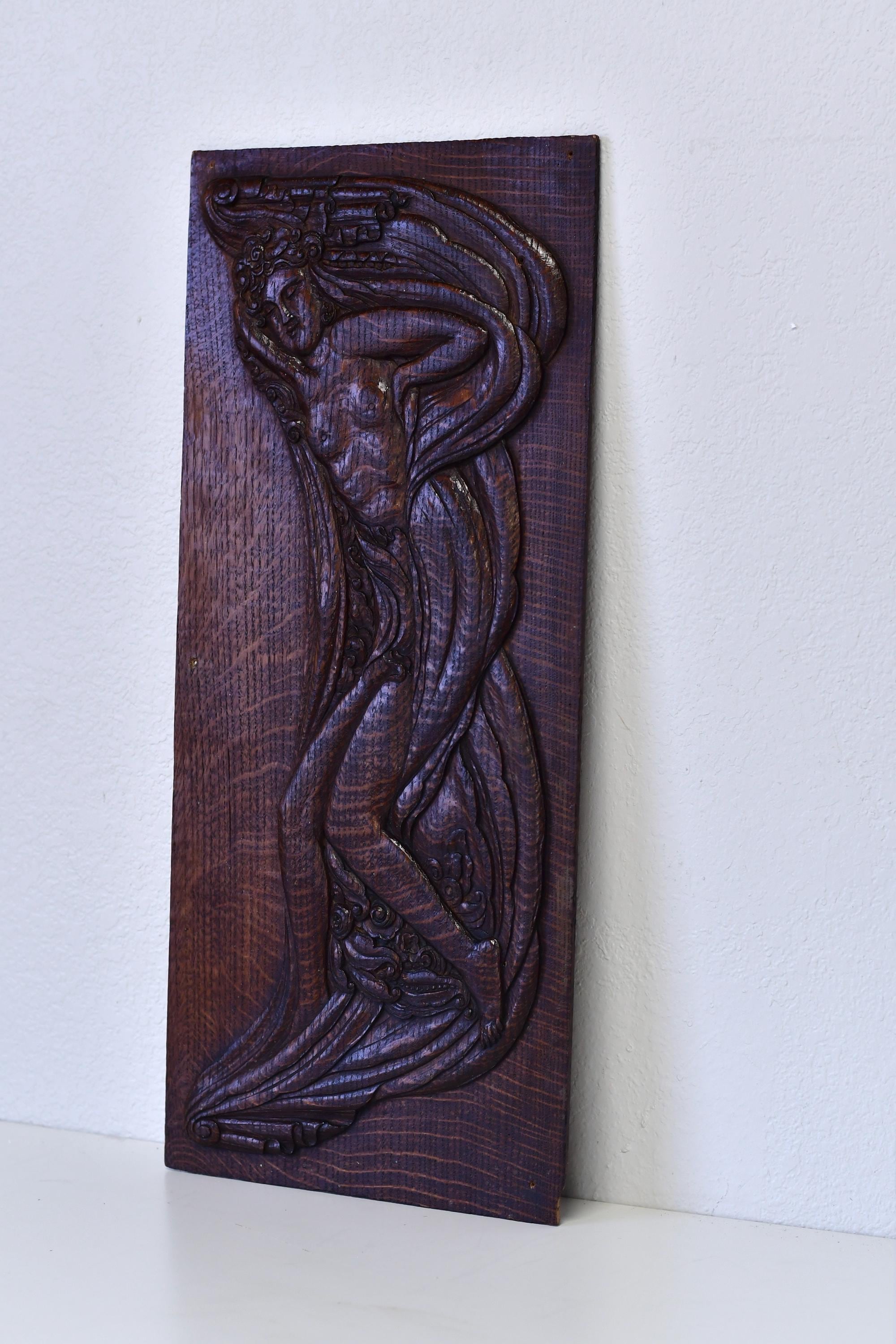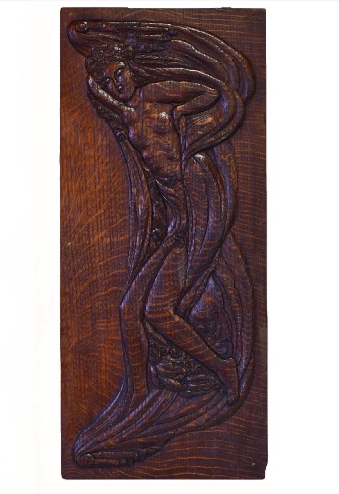 Antique Art Nouveau Aphrodite Venus Handcarved Art Relief on Oak Panel