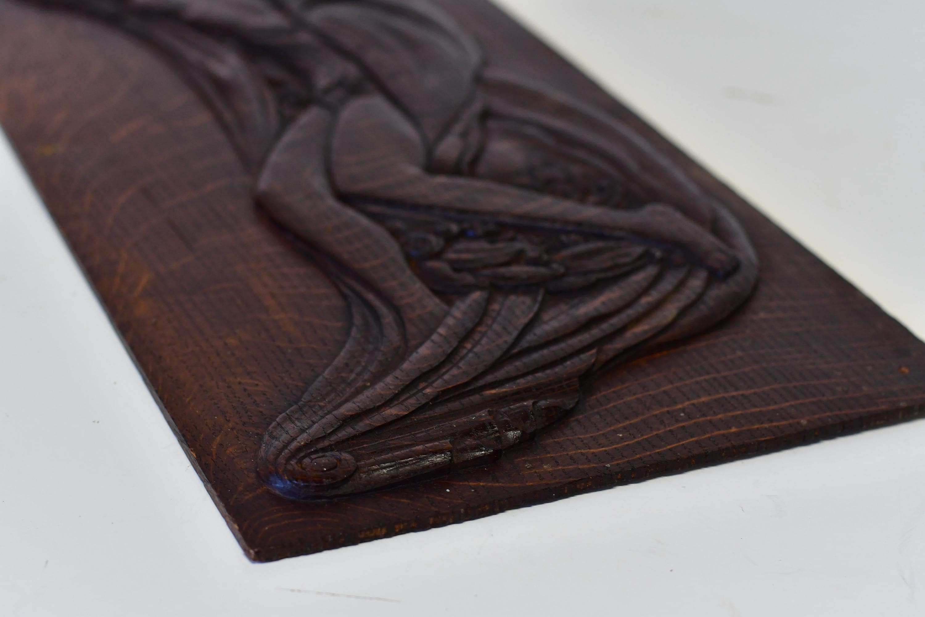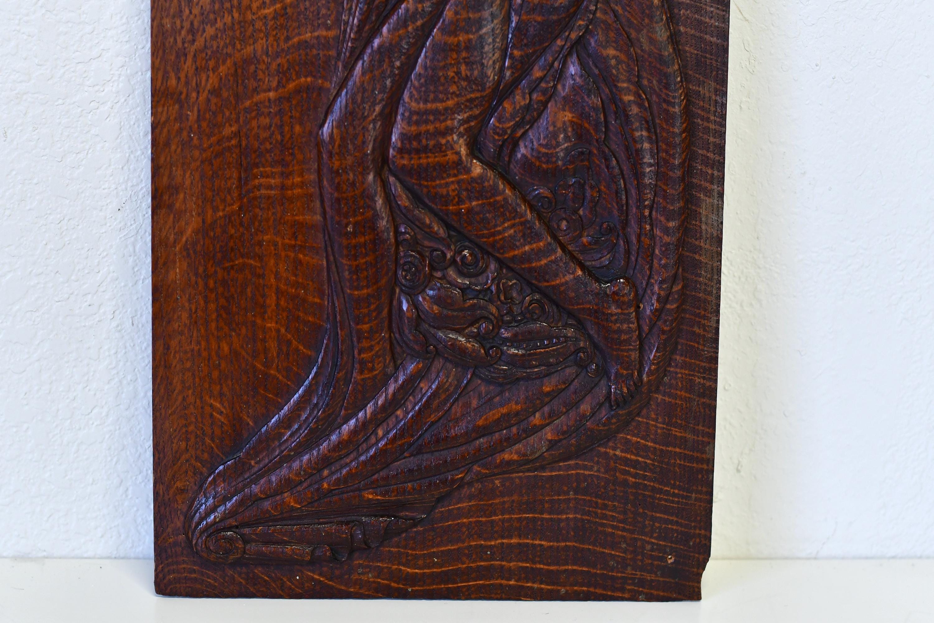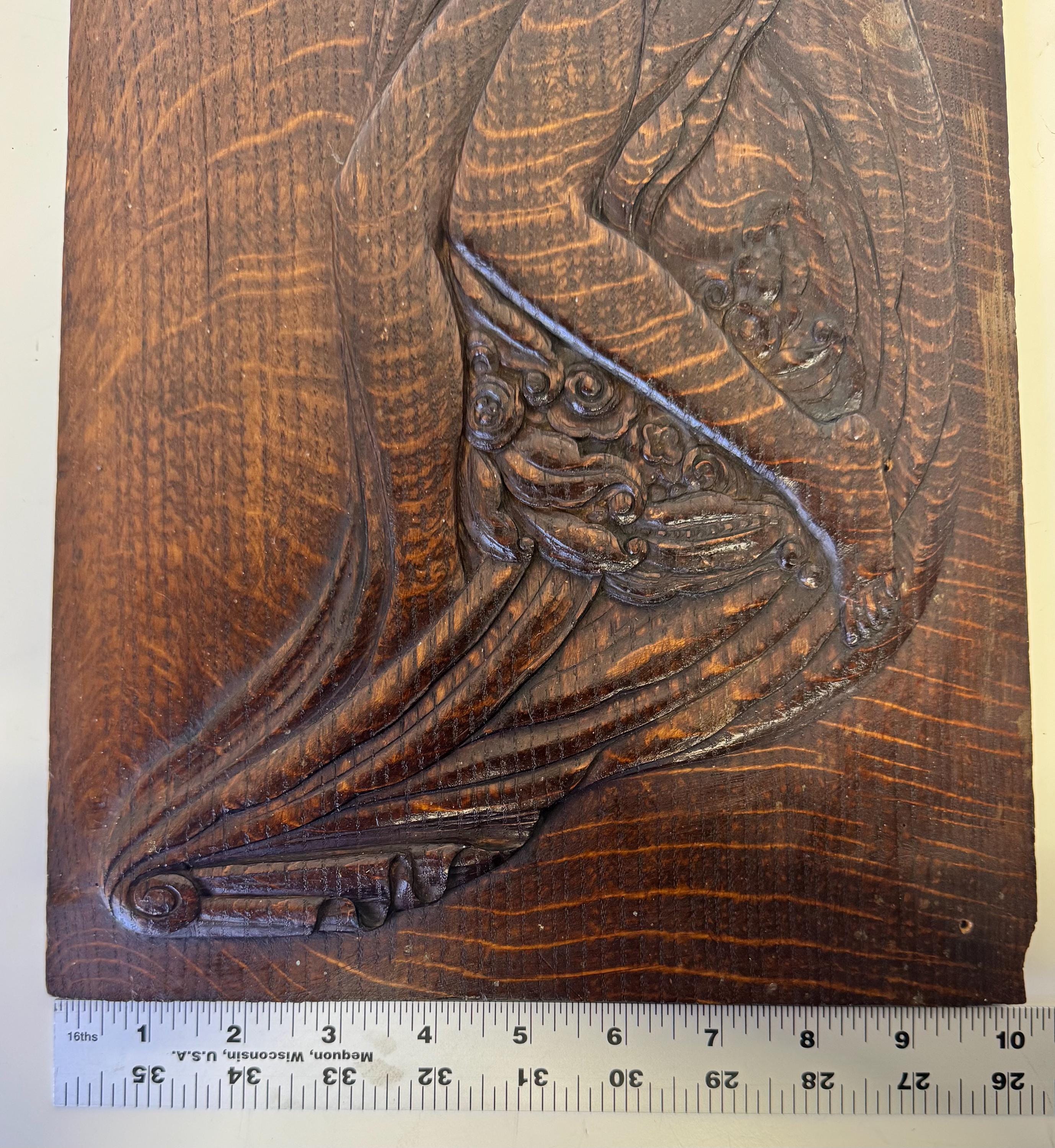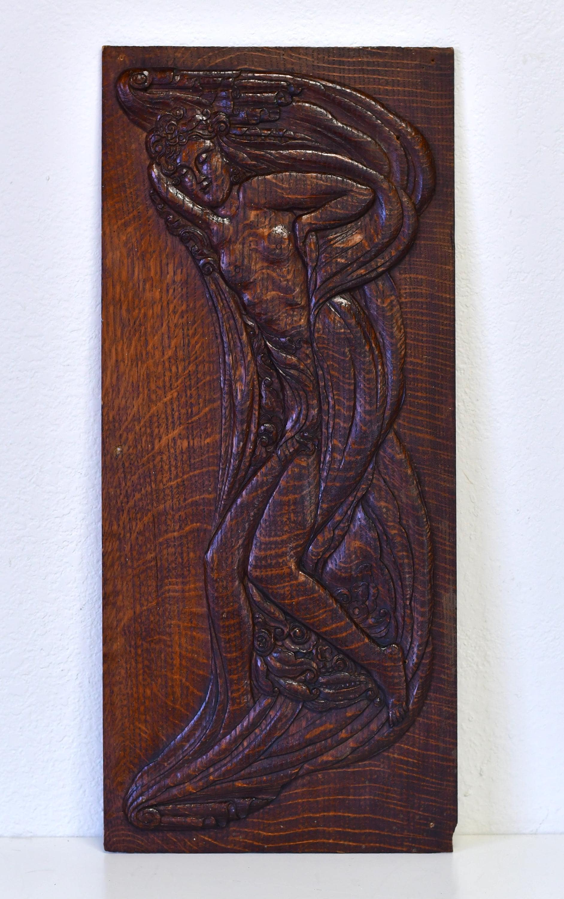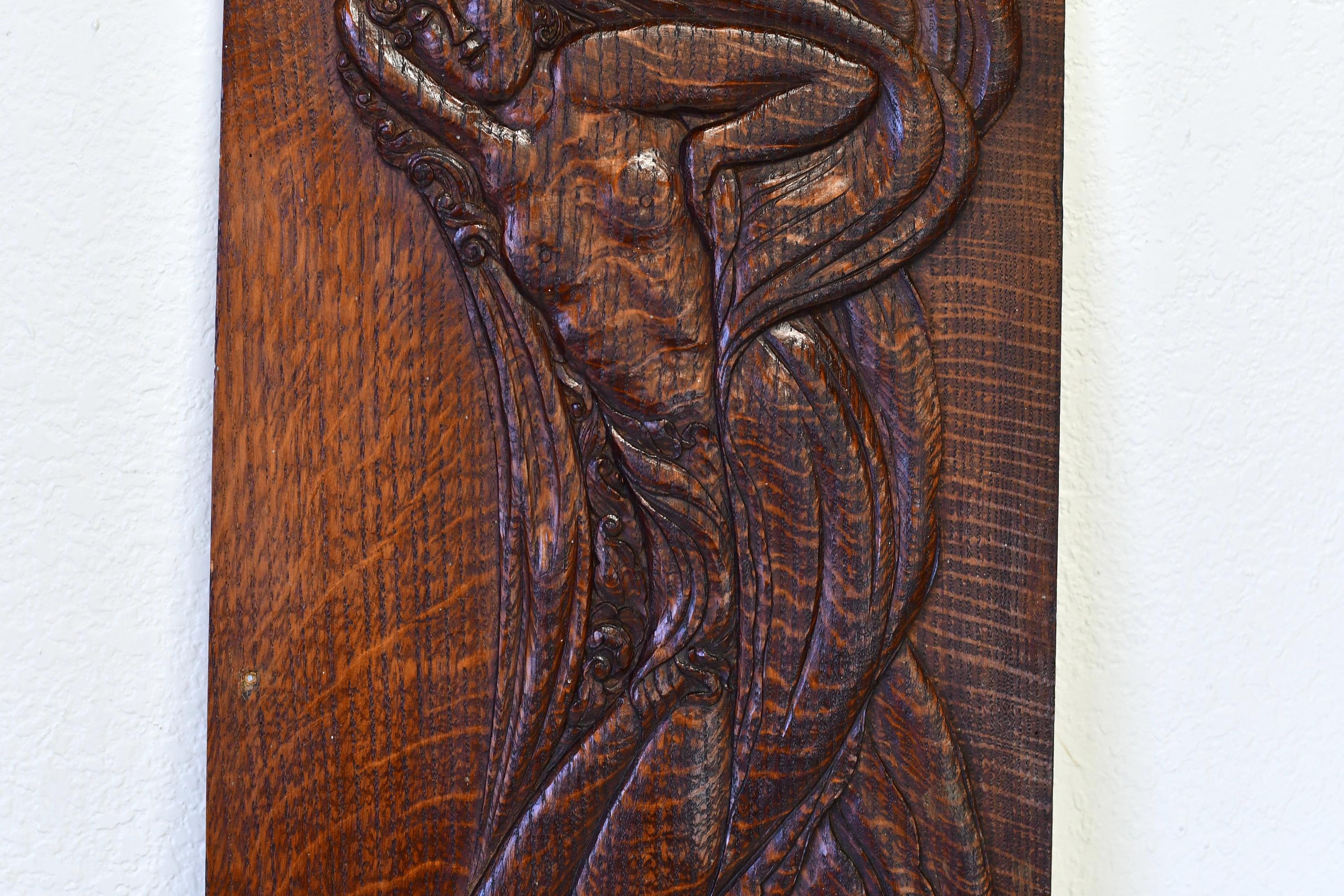 Antique Art Nouveau Aphrodite Venus Handcarved Art Relief on Oak Panel